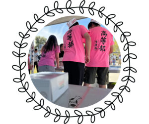 事前に各学年がダンスや競技の練習を重ね、中学3年生の応援合戦では、校長先生が直筆で書いた「赤組」「白組」のはっぴを着て、ソーラン節やダンスを披露!会場は大いに盛り上がりました。