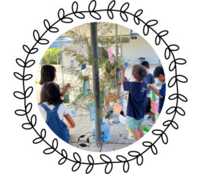 幼稚部・小学部低学年では、短冊に願いごとを書き、笹の葉に飾る七夕イベントを実施。